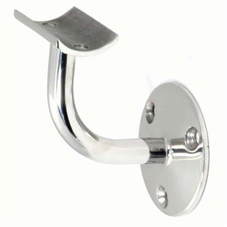Polished Style D Wall Mount Handrail Brackets are cast from type 304 stainless steel and feature a specular bright finish. This non-weld component has a round saddle with a 2-3/4" projection that fits 2.00" OD tube. Features 3 mounting holes. This bracket has been newly designed to meet the requirements for a vertical clearance between the underside of the handrail and the bracket arm of 1-1/2".