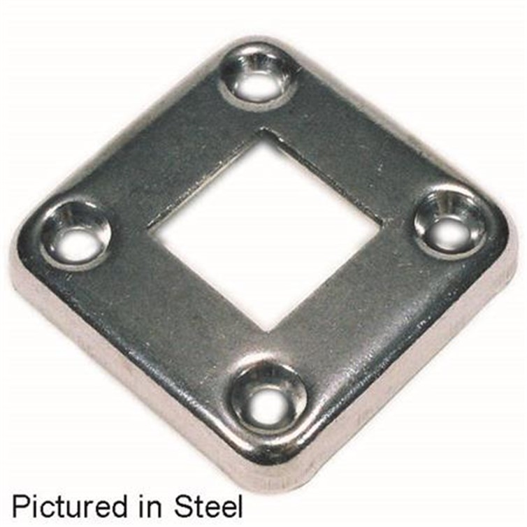 This is a 3" Flush Base with that is made for use with 1.25" square tube and has four countersunk holes for easy surface mounting. This Base is made from 3003 aluminum alloy and has a standard mill finish.