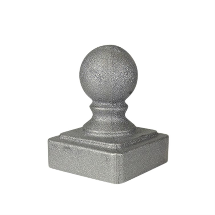 Cast Ball Post Cap for 3" square tube made from iron with a mill finish.