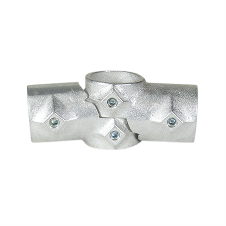 This non-weld, no-thread Aluminum Slip-On Adjustable Cross is a seamless fitting for pipe and OB tubing used to assemble railings, racks and other products. The fitting has a mill finish and can easily be secured with a simple set screw. Fits 1" pipe.