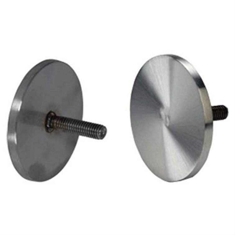 Glass Mount Handrail Bracket Adapter Kits are 1.25" in diameter and are compatible with 3/4" glass. Adapters are made from type 304 stainless steel with a brushed satin finish. Kit contains one disk with welded stud, two gaskets, and one spacer.