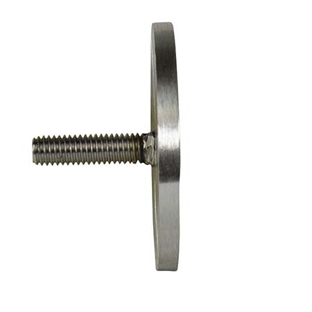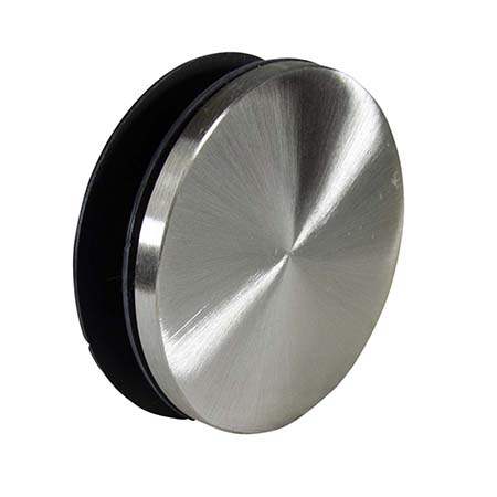 Glass Mount Handrail Bracket Adapter Kits are 1.90" in diameter and are compatible with 3/4" glass. Adapters are made from type 304 stainless steel with a brushed satin finish. Kit contains one disk with welded stud, two gaskets, and one spacer.