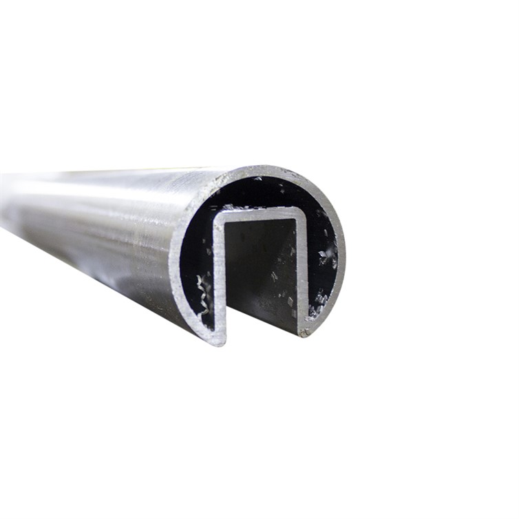 This extruded Aluminum Slotted Top Rail is made for 1.90" tube suitable for 1/2" glass. Railing is made from 6063-T52 aluminum alloy and features a smooth, brushed satin finish. Comes in 20' lengths.