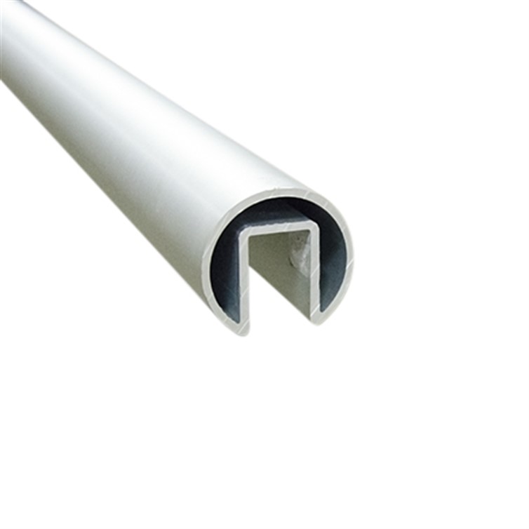 This Slotted Top Rail is made for 1.90" tube and is for use with 1/2" glass. Railing is made from 6063-T52 aluminum with an anodized finish. Comes in 20' lengths.
