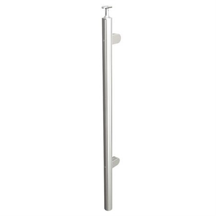 Brushed Stainless Steel Legato Round End Post with Round Clips, Embed Mount