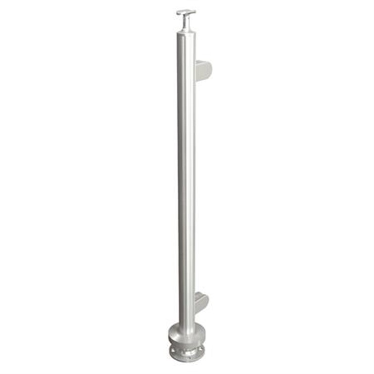Legato Railing End Posts made from 1.50" schedule 40 pipe (1.90" diameter with .145" wall), 42" high type 316 stainless steel with a brushed satin finish. Posts are for surface mounting. Round clips and cover flange included.