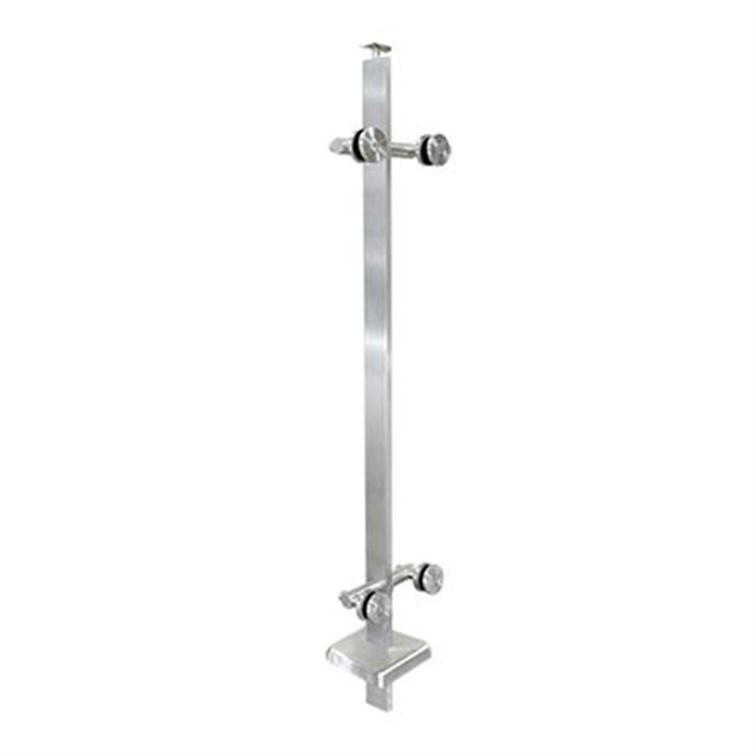 Legato Railing Intermediate Post, Stainless Steel, 1/2" x 2" Rectangular Bar, 42" High, Embed Mount, 2-Point Fitting, Cover Flange Included, Brushed Satin Finish, Type 316