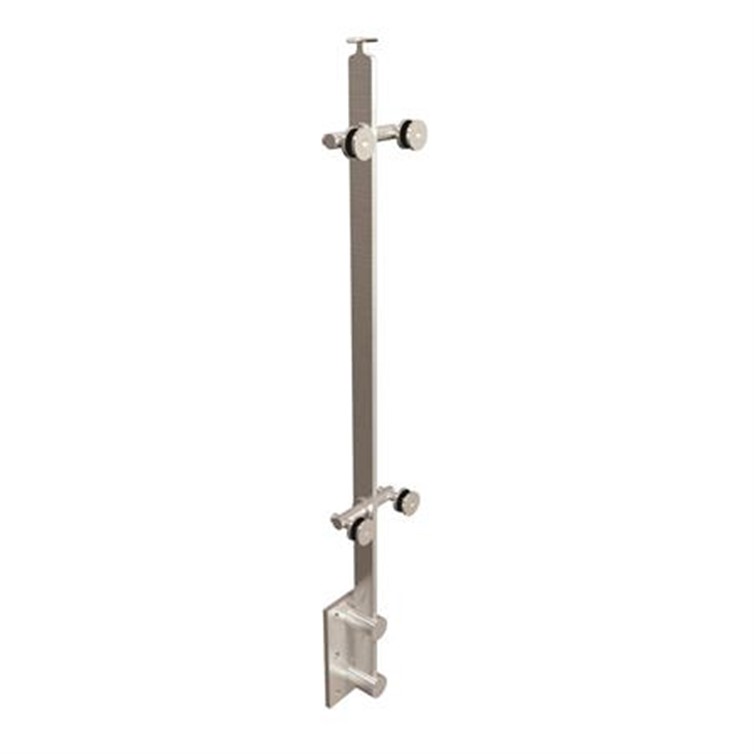 Legato Railing Intermediate Post, Stainless Steel, 1/2" x 2" Rectangular Bar, 42" High, Fascia Mount, 2-Point Fitting, Brushed Satin Finish, Type 316