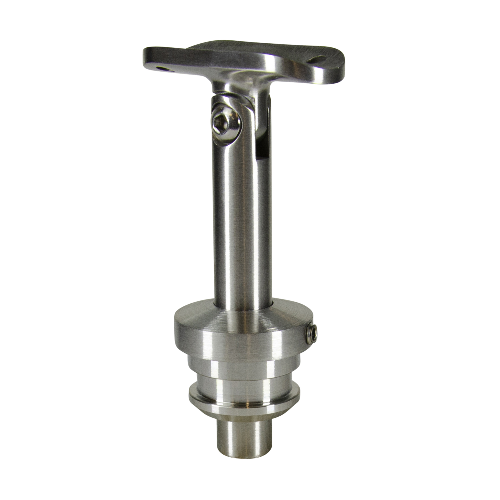 This type 316 Stainless Adjustable Post Mount Top Bracket is intended for use with stainless steel 1-1/2" tube. Vertical and angle are both adjustable. Vertical height can range from 2-1/4" to 4-3/8". Brushed satin finish.